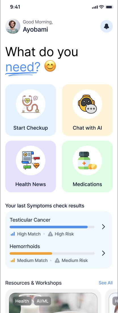 At Somalens, we've designed our platform with a range of key features that make it quick and easy to manage your health. Our health care assitant provides you with a companion to share your health concerns with and get answers. We offer a chat assistant powered by powerful AI algorithms to deduce your symptoms and proffer a quick diagnosis of what you are feeling, offer suggestions from quick home remedies, accessible medication and references to expert licensed physicians depending on the nature of your symptom. We also record the conversations so it can be revisited when similar symptoms occur.